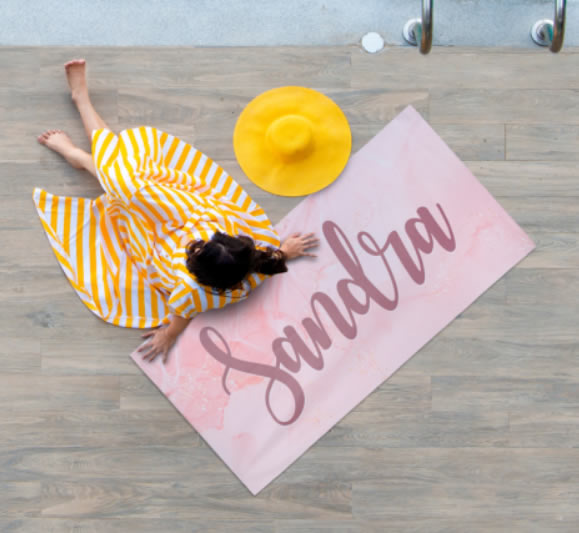 Toallas impresas en un color o todo a color, son las tollas personalizadas más usadas en eventos al aire libre, como camping, pisinas o playas