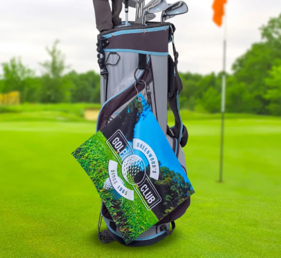 Toallas impresas en un color o todo a color, tollas personalizadas que son usadas en eventos corporativos y en especial en el deporte de golf.